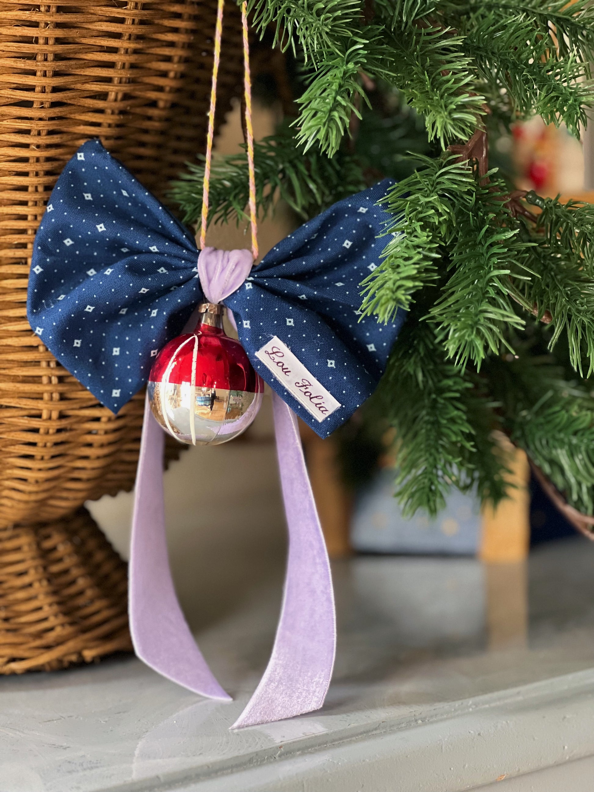 Hver sløjfe er lavet i hånden af nøje udvalgte tekstiler og bånd. Vintage julekuglerne er alle lavet af glas og bærer præg af deres alder, men på smuk vis. Vælg netop den julekugle med sløjfe, som vil tilføje et strejf af ekstra personlighed til din jul.